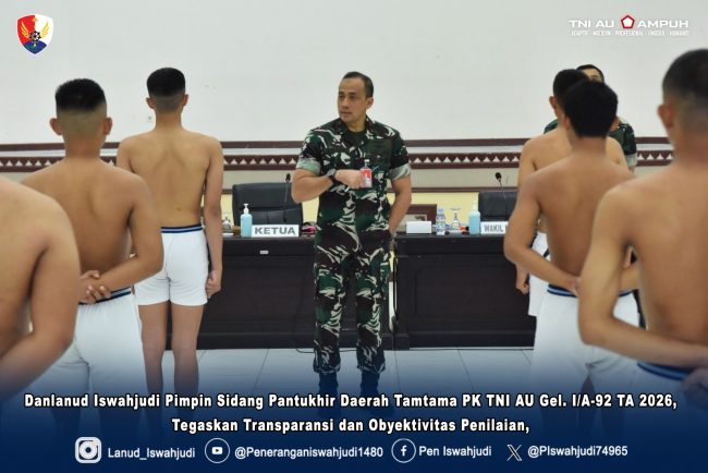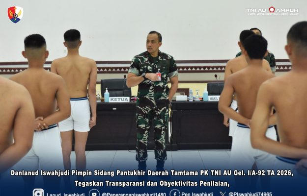 Menegaskan transparansi dan obyektivitas penilaian terhadap Calon Siswa (Casis), Danlanud Iswahjudi Marsma TNI Muchtadi Anjar Legowo, M.S., M.Han., memimpin Sidang Pantukhir Daerah Tamtama Prajurit Karier TNI Angkatan Udara (PK TNI AU) Gelombang I Angkatan Ke-92 TA 2026 di Gedung Graha Dewanto Lanud Iswahjudi, Madiun. Rabu […]