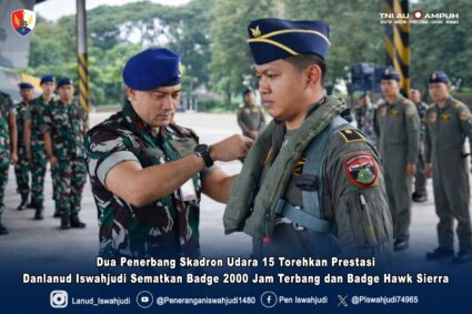 Dua penerbang Skadron Udara 15 menorehkan prestasi yang membanggakan, Mayor Pnb Yerick “Otter” Ardyan Finandhita, S.S.T.Han., yang berhasil mencapai 2000 Jam Terbang dan Letda Pnb Derievo Muhammad Zakwan, S.Tr.Han., yang berhasil Terbang Solo menggunakan Pesawat T-50i Golden Eagle. Atas pencapaian prestasi tersebut, Danlanud Iswahjudi Marsma […]