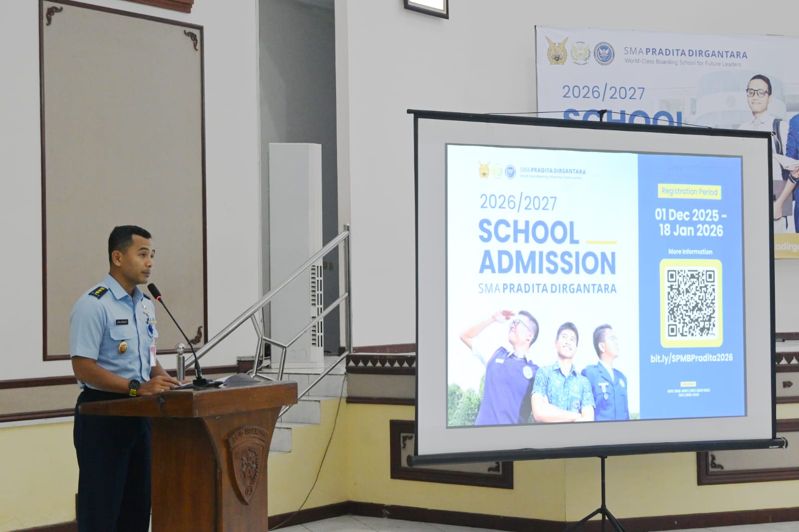 “SMA Pradita Dirgantara merupakan lembaga pendidikan unggulan yang memadukan pembinaan karakter, kecerdasan akademik, serta kedisiplinan khas dunia kedirgantaraan. Tujuannya adalah mencetak kader pemimpin bangsa yang unggul dalam Imtak dan Iptek,” ujar Danlanud.
