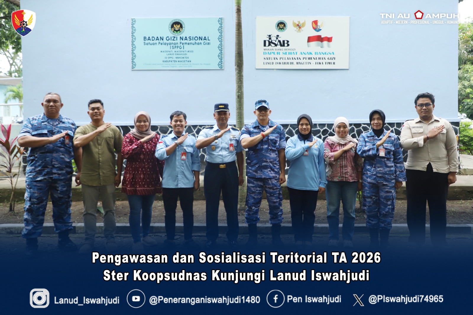 Meningkatkan efektivitas pelaksanaan tugas teritorial di lingkungan TNI Angkatan Udara, Ster Koopsudnas melaksanakan Pengawasan dan Sosialisasi Teritorial (Wassos Ter) TA 2026 di Lanud Iswahjudi, Madiun. Rabu (18/2/2026).