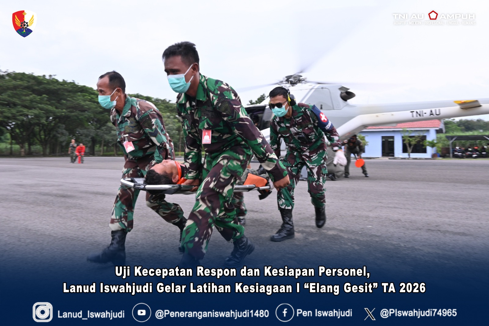 Dalam rangka menguji kecepatan respon dan kesiapan personel menghadapi dinamika penugasan, Lanud Iswahjudi menggelar Latihan Kesiagaan I “Elang Gesit” TA 2026. Senin (23/2/2026). Latihan ini dirancang untuk memastikan kesiapan unsur satuan sekaligus fungsi-fungsi dukungan operasi pangkalan dalam mendukung pelaksanaan tugas TNI Angkatan Udara.