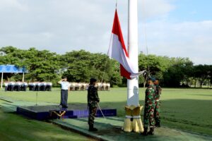 Memperkuat semangat cinta tanah air, personel Lanud Iswahjudi melaksanakan Upacara Bendera Mingguan di Lapangan Dirgantara Lanud Iswahjudi, Madiun. Senin (2/2/2026).