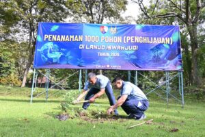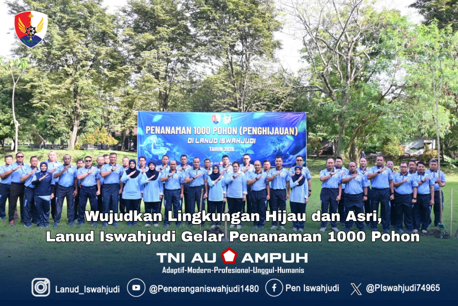MADIUN, LANUD ISWAHJUDI. Mewujudkan lingkungan yang hijau dan asri, Lanud Iswahjudi menggelar penanaman 1000 pohon di perempatan Disops Lanud Iswahjudi, Madiun. Jumat (23/1/2026).